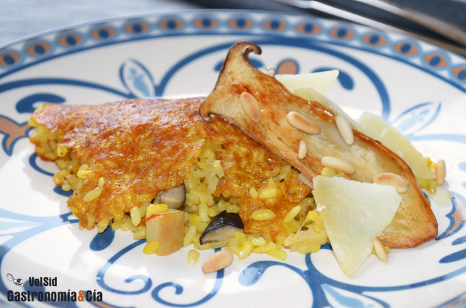Lasaña de arroz socarrat con shiitake y trufa negra