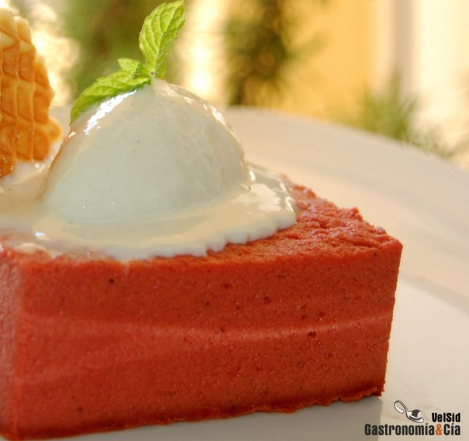 Tarta cremosa de queso y turrón de Jijona con base crujiente de chocolate