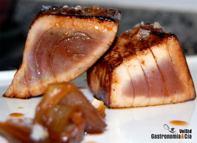 Atún teriyaki con cebolletas