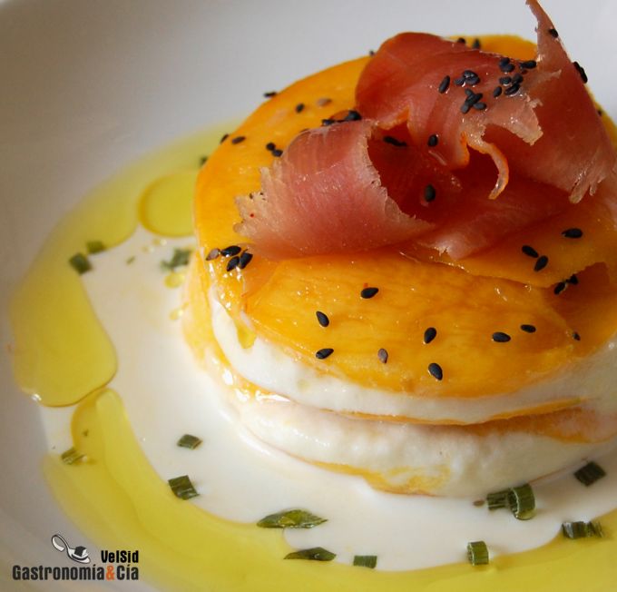 Lasaña de mango y brandada de bacalao