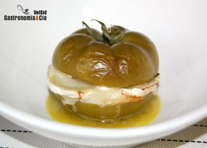 Tomates verdes asados con queso de cabra