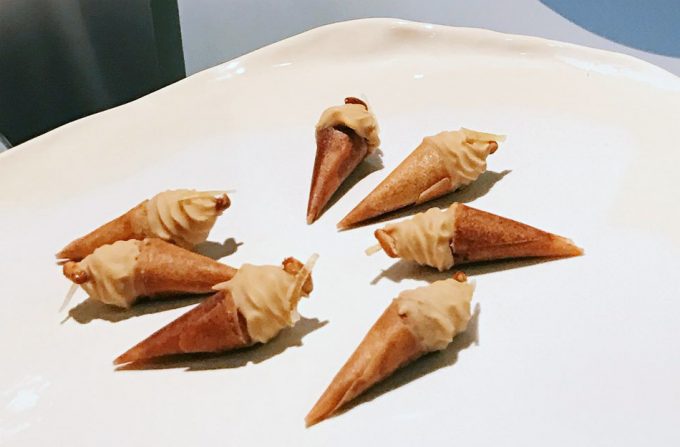 Para el Premio a la Mejor Pasta de Té, dotado con 1.500 euros, el pastelero creó la pasta con forma de helado, haciendo un guiño a Rocambolesc, que podéis ver en la foto. Según Paco Torreblanca, uno de los miembros del jurado, se ha valorado la originalidad, de la pasta de té, así como su elegancia, el gusto bien definido y el equilibro. Se trata de un pequeño cucurucho relleno de crema de piñones, limón y caramelo. Esperamos que muy pronto se pueda probar en las heladerías de los hermanos Roca.