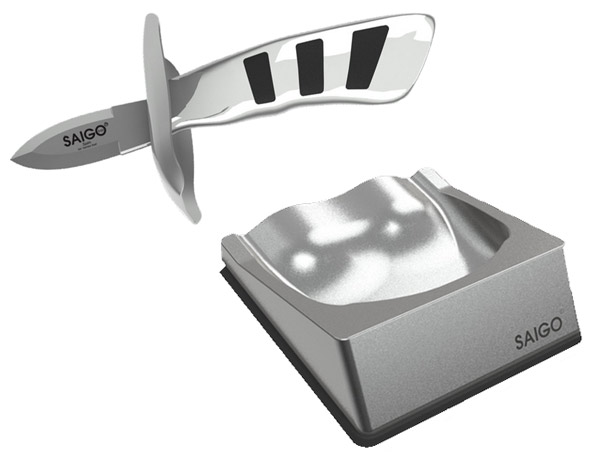 El utensilio principal para abrir las ostras es el pequeño cuchillo de hoja con forma de gota, corta y recia, acabada en punta para incidir con ella en la unión de las valvas, pero como os comentábamos, las valvas pueden hacer daño en las manos al sujetarlas, con la fuerza ejercida se nos puede ir la punta del cuchillo y lastimarnos, hay guantes que podemos utilizar para protegernos, pero también está la opción de este abreostras con soporte, nos parece un buen regalo de Navidad para quienes habitualmente consuman este molusco.