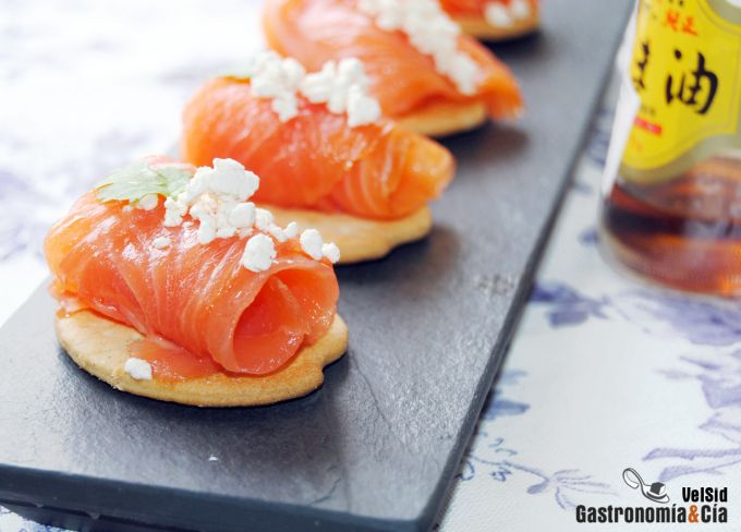 Si os apetece probar el aceite sólido tal y como veis en la foto, y que como ejemplo hemos servido con unas lonchas de salmón ahumado sobre una tostada, podéis hacerlo mezclando 10 gramos de aceite de sésamo de sabor intenso y 5 gramos de maltodextrina. Probad partiendo de este porcentaje, pero como os comentamos, puede que necesitéis cambiar la proporción.