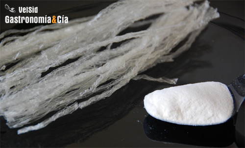 El agar agar permite gelificar alimentos ácidos, no así los grasos, además nos da la posibilidad de hacer gelatinas calientes. Puede proporcionarnos resultados muy atractivos, gelatinas completamente transparentes, brillantes, incluso las nuevas tendencias culinarias han llevado a lograr hacer “esferificaciones” con agar agar, ya os haremos una muestra de ello.
