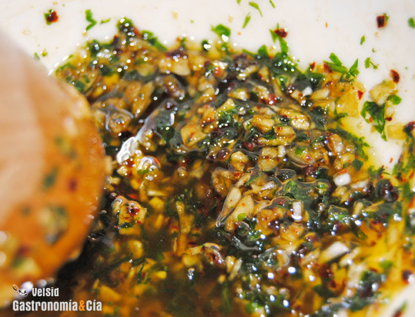 Seguramente esta será la base para elaborar distintos ajilimojes que hemos conocido, como los que incorporan guindilla o pimiento dulce, frutos secos (nuestro preferido para la pescadilla es con almendra tostada), hierbas aromáticas y especias, piel rallada de cítricos (lo que en Italia se conoce como Gremolata)…