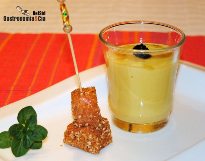 Un aperitivo o entrante para los días de calor y para los paladares que buscan sabores originales y combinaciones de sabor armónicas, es este Ajoblanco de mango con salmón rebozado, de elaboración sencilla y rápida, para servir bien fresco y sorprender a los comensales.