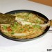 Nos explicó muchos resultados de sus experimentos con arroces, si tapar o no la paella, si nacarar o no el arroz, cuán concentrado debía estar el fumet… total, que elabora hasta paellas blancas, sin sofrito, una idea que le surgió tras un viaje a Nápoles, donde degustó la pizza blanca.
