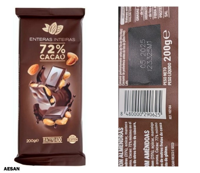 Se trata de un producto que comercializa Mercadona, el chocolate negro 72% con almendras de la marca Hacendado. Sobra decir que las tabletas de chocolate de estas características sólo se han distribuido en las tiendas de la cadena valenciana, pero no se especifica si el lote afectado, del que ahora os daremos información, se ha distribuidor por todo el país.
