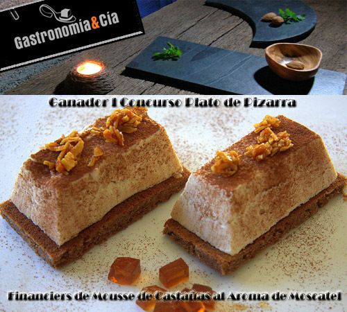 Después de mucho leer, mucho admirar fotografías, mucho cocinar y probar, y mucho más deliberar, Alfons Casalé es el ganador del Concurso Plato de Pizarra con Financiers de mousse de castañas al perfume de moscatel.