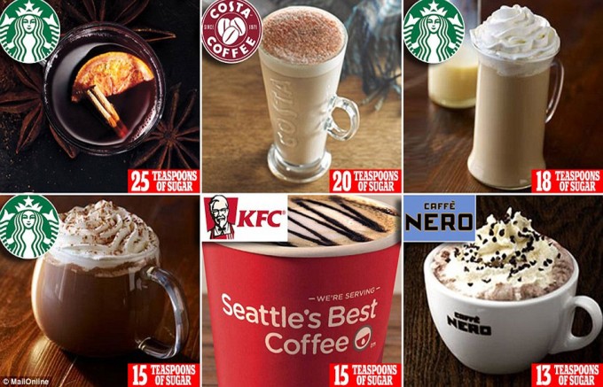 Hoy conocemos una investigación realizada por Action on Sugar (AoS), organización formada por un grupo de expertos que investigan los efectos del consumo de azúcar en la salud, en la que denuncia el elevado contenido de azúcar de algunas bebidas calientes que comercializan cadenas como Starbucks, Caffè Nero o Kentucky Fried Chicken. Esta organización ha analizado el contenido de azúcar de 131 bebidas, los resultados obtenidos sorprenden, algunas bebidas calientes contienen hasta 25 cucharaditas de azúcar, multiplicando por tres la ingesta máxima recomendada por la OMS.