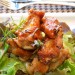 Sirve una cama de lechugas variadas, después resulta deliciosa con el aderezo que han desprendido las alitas de pollo. Sobre la ensalada sirve las alitas de pollo y riega con el jugo que haya quedado en la sartén. ¡Buen provecho!