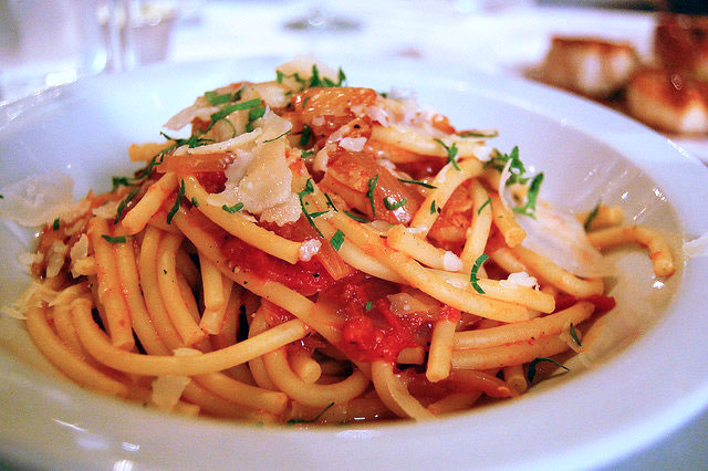 En Amatrice, esta salsa se utiliza principalmente para condimentar espaguetis, pero fuera de esta ciudad muchos tipos de pasta se preparan all’amatriciana, entre otros, los rigatoni, aunque quizá es más habitual con bucatini. Estamos preparando nuestra receta de Bucatini all Amatriciana, así que en breve os explicaremos la receta paso a paso.