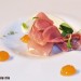 Su oferta culinaria se basa en el menú degustación flexible, éste le permite realizar una cocina de mercado, de temporada, abastecida diariamente del Mercado de La Ribera y de otros productores y proveedores de proximidad. El pescado es enseña principal de su cocina, y así lo vimos en el taller en el que ilustró a todos los asistentes con la elaboración de seis platos.