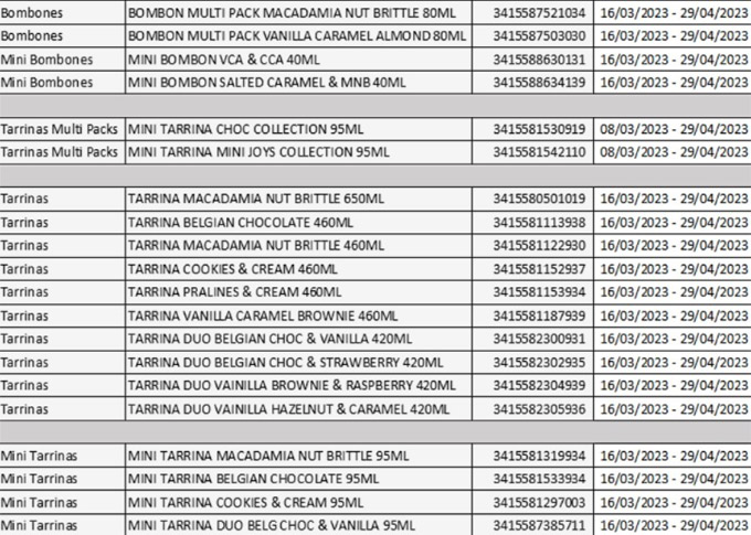 La ampliación de la alerta ofrece información actualizada de los helados afectados y que se han distribuido en España y, aunque se están retirando de los puntos de venta, es probable que algunos consumidores tengan en casa algunos de los helados sujetos a la alerta, por lo que deben abstenerse de consumirlos, deben devolverlos al establecimiento en el que los adquirieron.