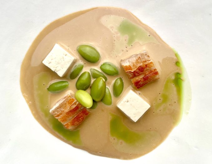 Inoculan el haba marina con Aspergillus sojae y con ello pueden elaborar todos los productos japónicos que están tan de moda en Occidente, salsa de soja marina, tamari, natto de ‘soja’ marina, gochujang, tofu fermentado, douchi, miso, shio-koji, saikyo-zuke… productos que han sido y serán incluidos en el menú de Aponiente.