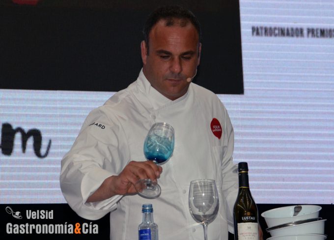 La ponencia empieza con una breve introducción del momento en el que está el Restaurante Aponiente y el equipo que lo compone, recordando que este restaurante reconocido con dos estrellas Michelin cambió hace un año de ubicación para estar más cerca del mar y ofrecer un espacio a la altura de los platos. Ha vuelto a hacer obras para conseguir que el comensal esté aún más cerca del mar, que esté en la marisma, en la salina, que recolecte el propio pescado… y por supuesto, que coma y beba que es para lo que se sientan a la mesa.