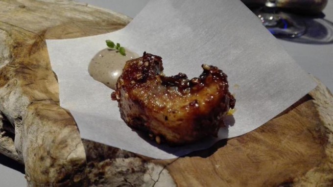 Como podéis ver en la foto, la Anguila en adobo y alioli de ajo negro de Diego Gallegos más que un plato es un bocado de degustación, pero es un bocado muy particular y con un intenso sabor. Si queréis probarlo elaborado por el conocido como Chef del Caviar, tendréis que visitar su restaurante Sollo en Fuengirola, pero si os animáis a elaborarlo en vuestra cocina, a continuación tenéis la receta.