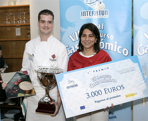 Antonio Romero Sangüesa, de la Escuela de Hostelería y Turismo de Lleida, se proclamó ganador del Concurso Gastronómico Interatún, premio dotado con 3.000 euros, con su Timbal de Atún Claro en Aceite de Oliva con trinxat de plátano, jengibre y jamón ibérico.