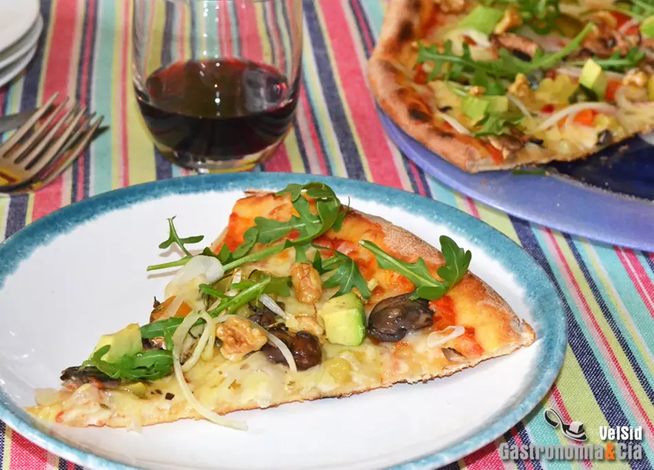 Pizza vegetal (cebolla, berenjena y pimiento)