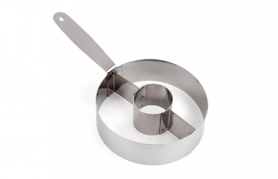 El Aro círculo doble de 100% Chef es de acero inoxidable y tiene un diámetro de diez centímetros y el interior de 3 centímetros. Además, cuenta con el asa que muchos otros aros (al menos los primeros que salieron) no tienen y, la verdad, es muy cómoda para trabajar, no tanto para guardar el accesorio en el cajón después.