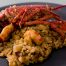 Servimos en un plato hondo la ración de arroz caldoso y colocamos encima medio bogavante.