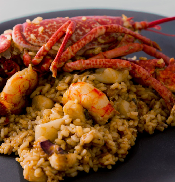 El arroz de bogavante lo servimos en la misma paella con un soporte de acero (patentado), cada uno de su medida, para que no se queme ni se manche el comensal.