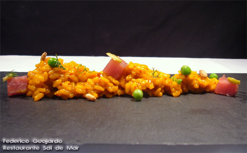 Hoy contamos de nuevo con una receta de cocina tradicional actualizada del chef del Restaurante Sal de Mar de Dénia, Federico Guajardo. La sección de Recetas de los Chefs nos ofrece hoy un Arroz meloso de pimiento a la brasa para que lo pongamos en práctica en nuestra cocina y para que nos acerquemos al restaurante de este joven cocinero si queremos degustar su elaboración.
