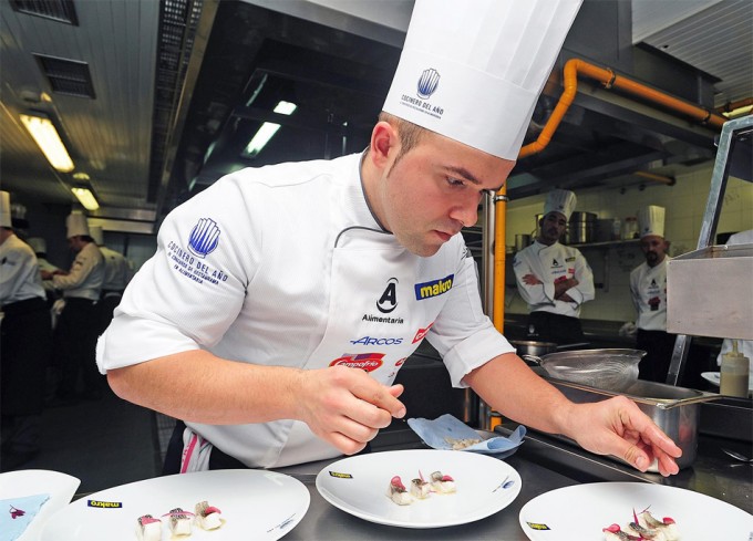 El recorrido que la organización del Concurso Cocinero del Año realiza por las distintas Comunidades de España para clasificar a los finalistas del certamen que tendrá lugar en Barcelona ya ha concluido. La primera semifinal tuvo lugar en febrero de 2013 en Jerez de la Frontera, después pasó por Burgos, Murcia y Barcelona, y ayer llegó hasta Galicia para seleccionar al quinto semifinalista del Concurso Cocinero del Año 2014, y él es Asier Alcalde Larrañaga del Restaurante Laia de Hondarribia (Guipuzcoa).