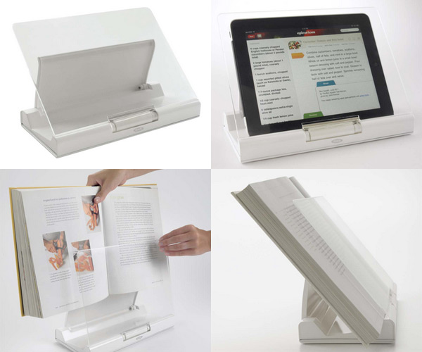 Oxo ha lanzado un nuevo atril para tablets o libros de cocina, hay que estar al día en la oferta de productos que faciliten las labores cotidianas y cuando se cocina siguiendo una receta, ya no sólo se utilizan libros, los tablets están cada día en más manos. Que este atril sirva tanto para tablets como para libros, es un acierto, porque personalmente nosotros no vamos a prescindir nunca del papel, los libros son una joya.