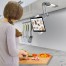 Para pasar de página de un libro o manipular las teclas del tablet, basta con bajar la pantalla antisalpicaduras, aunque estemos ‘con las manos en la masa’ será un gesto sencillo para el que sólo necesitamos una mano, pero no se debe olvidar volverla a poner en la posición adecuada para evitar que mientras preparamos los alimentos o cocinamos, nuestra fuente de lectura se ensucie.