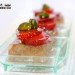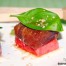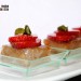 Para montar el aperitivo dispón como base el atún marinado, coloca sobre él dos rodajas de fresón y dos pistachos repelados, termina aderezando con una cucharadita del jugo de la marinada y unas escamas de sal. ¡Buen provecho!