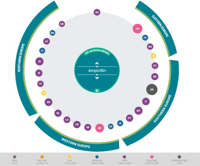 Además del informe que podéis consultar en este Pdf, os recomendamos acceder a esta herramienta interactiva que os permitirá consultar el nivel de resistencia a los antibióticos presente en los distintos países europeos dependiendo del fármaco.
