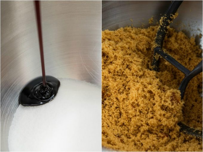 Entre las cuestiones que queremos abordar está que hacer azúcar moreno en casa es muy fácil, simplemente hay que mezclar azúcar refinado con melaza, para muestra os dejamos un vídeo que no dura ni un minuto, pero se aprecia a la perfección cómo tiñe el azúcar blanco con la melaza, ya sabéis que es el residuo de la cristalización del azúcar de caña, y que es como un jarabe espeso de color oscuro. Podéis ver muchos más vídeos en internet, la mezcla se puede hacer con una batidora o amasadora, y también se puede hacer de forma manual.