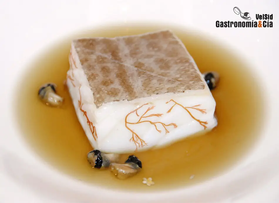 Hace unos años Sergio Bastard, actualmente chef del Restaurante Casona del Judío, nos mostró lo que para él es un ingrediente en la cocina, el alga parásita que extrae del alga codium. La ha utilizado en varios de sus platos, como en este Bacalao a baja temperatura, jugo y texturas de mar. Se trata de un plato principal para el que elabora un caldo de cebolla roja al que le dedica entre 24 y 36 horas.