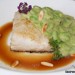 Sirve el bacalao en el plato y sobre éste, tres o cuatro cucharadas de habitas, reparte los piñones en los platos y termina regando con el jugo de miel y tomillo limón.