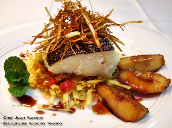 Uno de los pescados que no suele faltar en la carta de un restaurante o en el recetario habitual de una cocina doméstica es el bacalao, tiene una carne muy sabrosa y nos da muchas posibilidades a la hora de combinarlo con cereales, verduras, tubérculos… también es muy agradecido a la hora de cocinarlo, podemos hacerlo a la plancha, al horno confitado… como esta receta de Bacalao con patatas paja, pisto y manzana al calvados que comparte el cocinero del Restaurante Rancho Texano (Madrid), en la sección de Recetas de los Chefs.