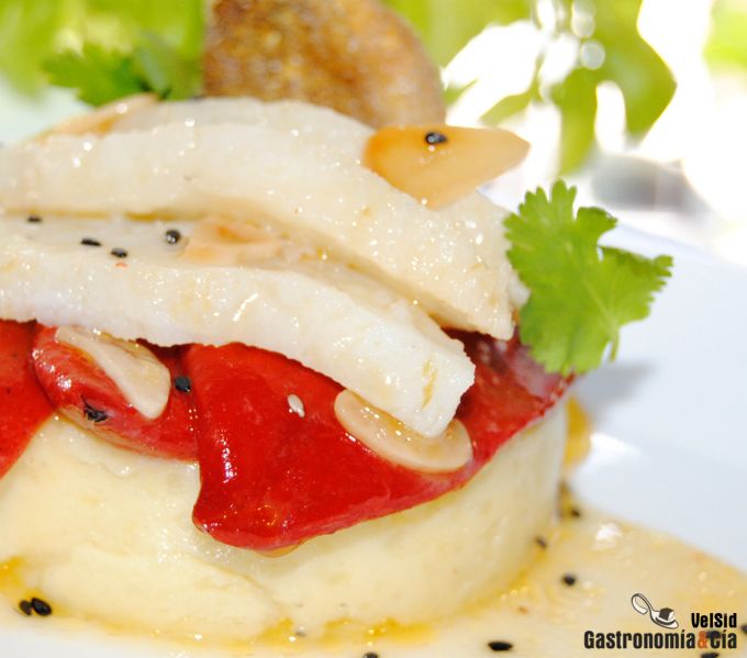 La receta de Bacalao con pimientos del piquillo confitados sobre parmentier o puré de patatas, será un exquisito plato para deleitar los paladares amantes de los sabores naturales, armoniosos y en muchos casos instaurados en la memoria gustativa. El bacalao y los pimientos del piquillo son un matrimonio siempre muy bien avenido, sea cual sea la técnica de cocción o la presentación del plato, siempre tenemos buenas experiencias palatales.