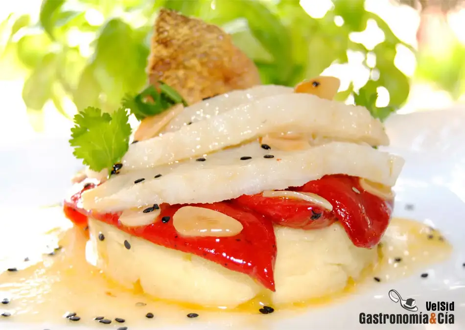 La receta de Bacalao con pimientos del piquillo confitados sobre parmentier o puré de patatas, será un exquisito plato para deleitar los paladares amantes de los sabores naturales, armoniosos y en muchos casos instaurados en la memoria gustativa. El bacalao y los pimientos del piquillo son un matrimonio siempre muy bien avenido, sea cual sea la técnica de cocción o la presentación del plato, siempre tenemos buenas experiencias palatales.