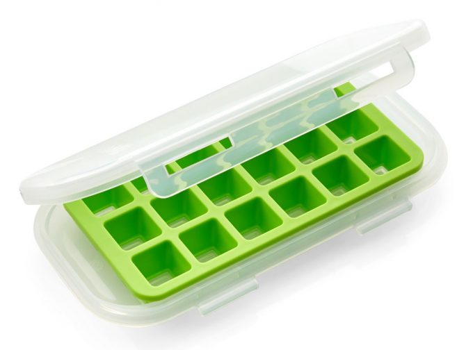 Tovolo® Garlic Freezer Tray es una bandeja con 18 cavidades, igual que una cubitera tradicional, que queda encerrada en una especie de táper o fiambrera. Tiene una base y una tapa que cierran herméticamente y así, ni se escapa el olor a ajo, ni permite que el frío estropee este ingrediente. Es interesante destacar que, según el fabricante, el ajo congelado se desmolda fácilmente para poder utilizarlos en los guisos en cualquier momento, además, por su forma, no ocupa mucho espacio en el congelador.