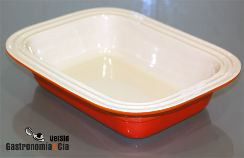 De momento, esta línea ofrece tres formatos, bandejas rectangulares con un interior de 25, 27 y 34 cm x 17’5 cm de ancho. En ellas podemos elaborar todo tipo de platos al horno, guisos de carne, pescados, arroces, bizcochos, flanes… precisamente la estrenamos haciendo un Flan de queso de tamaño familiar, con un resultado estupendo.