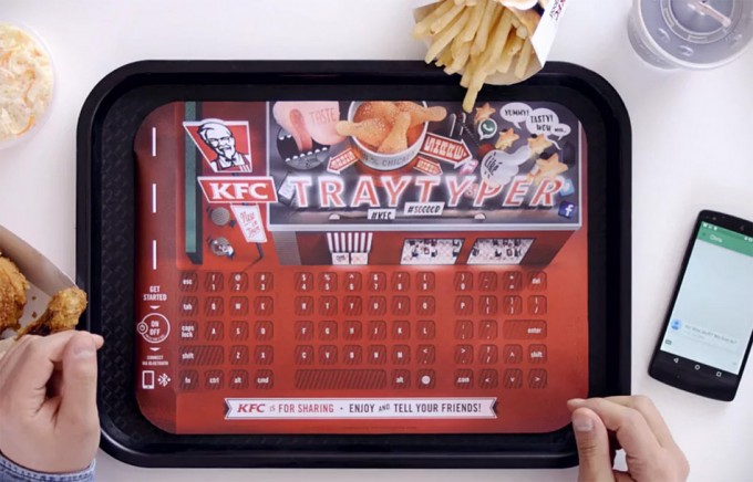La agencia de publicidad Serviceplan ha puesto en marcha una campaña para KFC Alemania, presentando unas bandejas para comida con teclado que se podrán conectar con los dispositivos a través de Bluetooth, facilitando el uso de la tableta o del teléfono inteligente sin tener que tocar su teclado, y por tanto, se evitará mancharlo.