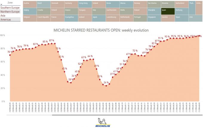 En definitiva, es una radiografía de la situación de los restaurantes con estrella Michelin en cada país del mundo, como decíamos, de momento los datos de las últimas semanas son muy buenos y muestran prácticamente plena actividad en el sector de la restauración.
