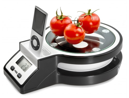 ¿Cuál es la excusa para que una báscula de cocina incorpore un espacio para conectar el iPod?, generalmente nos quejamos de la falta de tiempo para cocinar, si se cocina poco, menor será aún el tiempo que se dedica a elaborar recetas de cocina que precisen de mayor atención, con cantidades exactas de ingredientes entre otros detalles, por lo que deducimos que lo que en principio es un accesorio de cocina específico, pasaría a convertirse en un elemento para la reproducción de música, eso sí, en la cocina. Aunque hay que reconocer que tiene un bonito diseño y seguramente no desentonaría en exceso si se lleva también al salón, ya de paso, que amenice la cena…