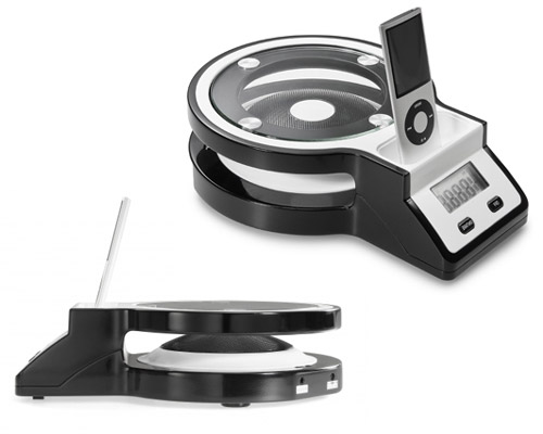 Con lo bien que funcionan los soportes normales para iPod con sus altavoces, y lo bien que van la mayoría de básculas digitales, ¿crees que habría espacio para esta báscula en tu cocina?