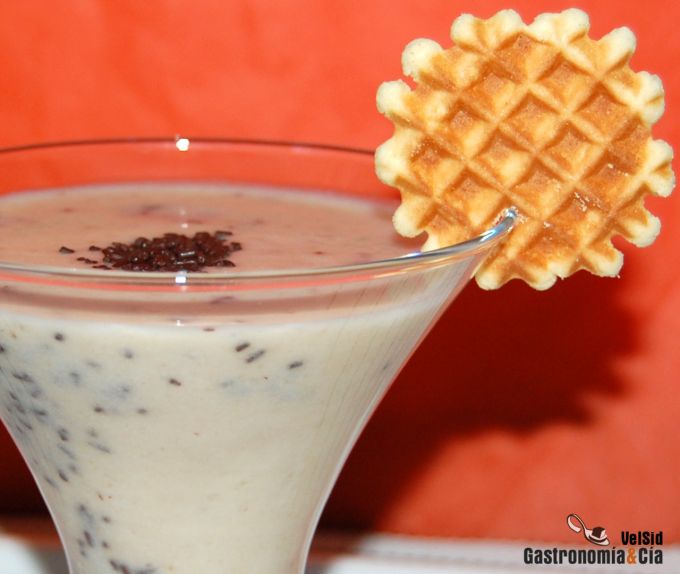 Para hacer el batido puedes utilizar una batidora específica, la Thermomix o la batidora de mano, nosotros lo hacemos con la Thermomix. Con respecto a la densidad del batido, siempre cabe la posibilidad de montar la nata antes de añadirla, hoy no lo hemos hecho así, pero la verdad es que resulta muy agradable al paladar, os recomendamos probarlo.