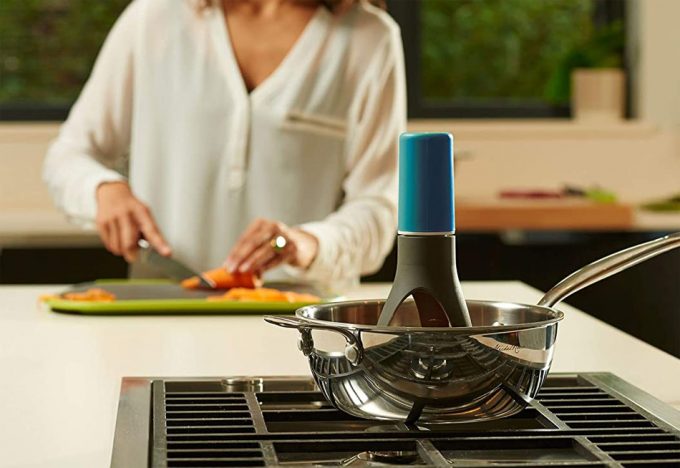 Hace años que se inventaron los batidores, mezcladores o agitadores automáticos para ollas y otros recipientes de cocción, y hay distintos modelos, unos más aparatosos que otros, algunos imaginamos que serán más funcionales que otros, de momento no nos vemos en la necesidad de tener que recurrir a este tipo de ‘ayuda’ para cocinar, afortunadamente, pero estamos seguros de que habrá personas a las que les puede resultar muy útil y podría favorecer que cocinaran más. Y hemos visto que el modelo de batidor automático que ilustra estas líneas, bautizado con el nombre de Stirr (que significa agitar), está disponible en nuestro mercado.