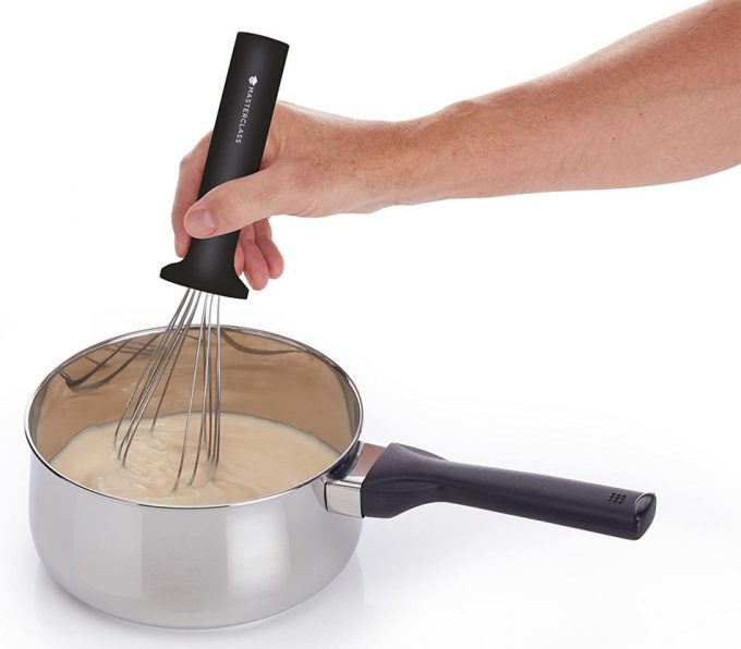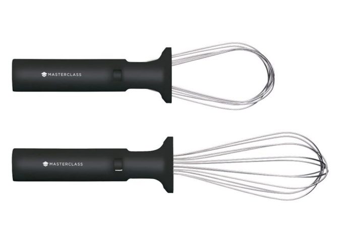 Nos ha gustado más el batidor de mano o varillas manuales de acero inoxidable plegable de la línea MasterClass de KitchenCraft, por eso os lo enseñamos, por si tenéis que renovar este utensilio de cocina, esta puede ser una opción, especialmente si tenéis poco espacio en los cajones de la cocina. Nosotros tenemos varios batidores de mano de distintos tamaños y hemos tenido que destinar un cubertero grande de los que se utilizan para espátulas, para colocarlos de pie, y realmente ocupan muchísimo espacio en el armario…