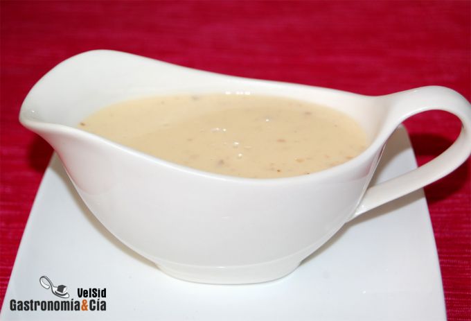 Mientras tanto trocea la mantequilla recién sacada del frigorífico en daditos y cuando la preparación anterior esté lista, empieza a incorporar la mantequilla poco a poco sin dejar de remover con las varillas. Procura en todo momento que la salsa no entre en ebullición.