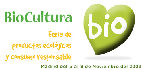 BioCultura Madrid 2009, la feria de productos ecológicos y consumo responsable, es una cita que se celebrará en el Pabellón de Cristal de la Casa de Campo de Madrid del 5 al 8 de noviembre. BioCultura es una de las ferias más importantes que se celebran en España y Europa, en ella podemos encontrar todo tipo de alimentos, productos, accesorios, mobiliario o servicios relacionados con el mundo de la ecología y el respeto medioambiental.